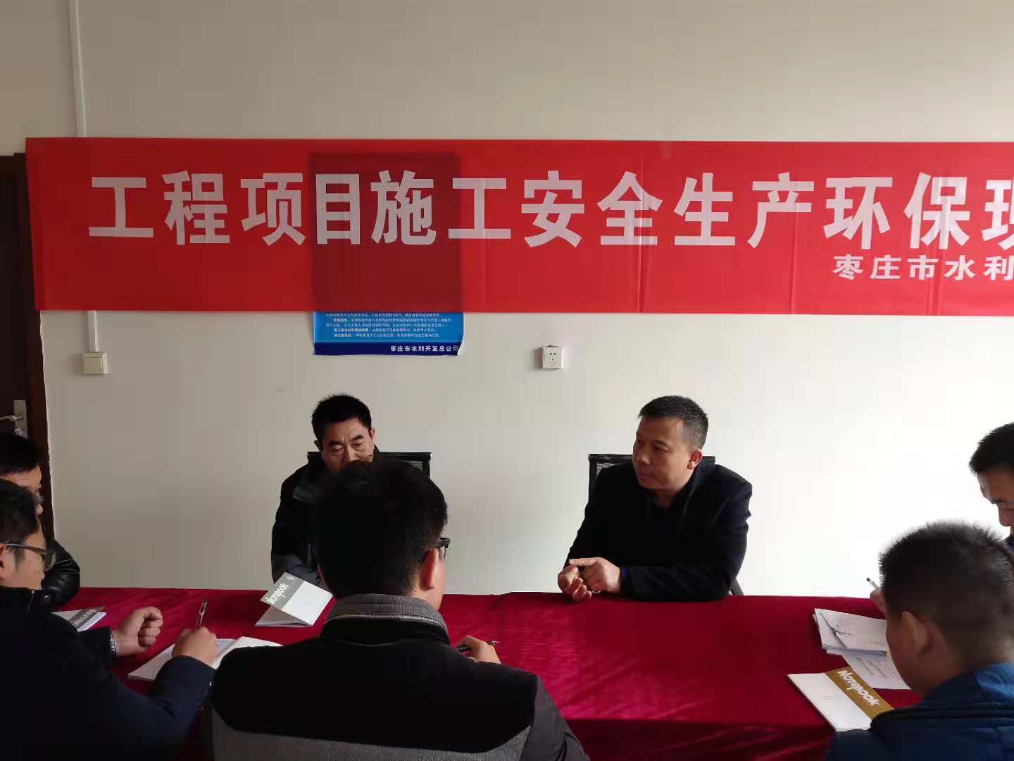 2018年12月7日上午,棗莊市水利開發(fā)總公司副總經(jīng)理高明同志帶領(lǐng)安全環(huán)保部一行到薛城區(qū)沙溝鎮(zhèn)薛城區(qū)淮河流域平原老洼地治理南四湖片區(qū)進(jìn)行現(xiàn)場安全督查部署,并邀請監(jiān)理部李季及監(jiān)理人員、項(xiàng)目部全體到項(xiàng)目經(jīng)理部參加項(xiàng)目施工安全生產(chǎn)環(huán)保現(xiàn)場會(huì)議。