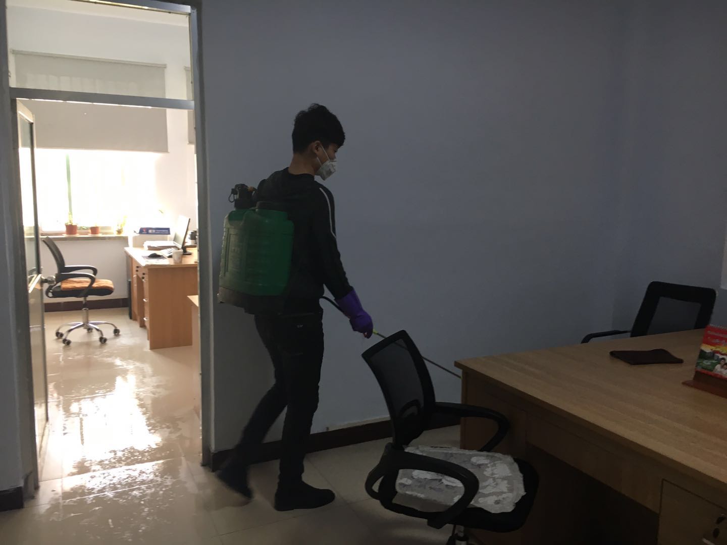 組織人員第一時(shí)間對工作場所進(jìn)行環(huán)境衛(wèi)生清潔消毒工作。