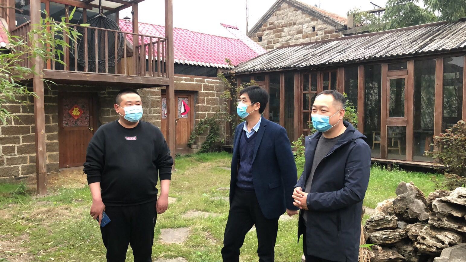 圖為:山亭區(qū)北莊鎮(zhèn)人民政府領(lǐng)導與棗莊市水利開發(fā)有限公司副總經(jīng)理連永、棗莊市水利勘測設計院周明主任踏勘傳統(tǒng)村落項目現(xiàn)場
