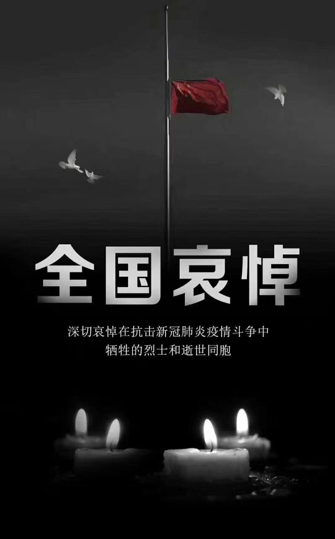 4月4日,全國(guó)舉行哀悼活動(dòng),表達(dá)對(duì)抗擊新冠肺炎疫情斗爭(zhēng)犧牲烈士和逝世同胞的深切哀悼。在此期間,全國(guó)和駐外使領(lǐng)館下半旗志哀,全國(guó)停止公共娛樂活動(dòng)。