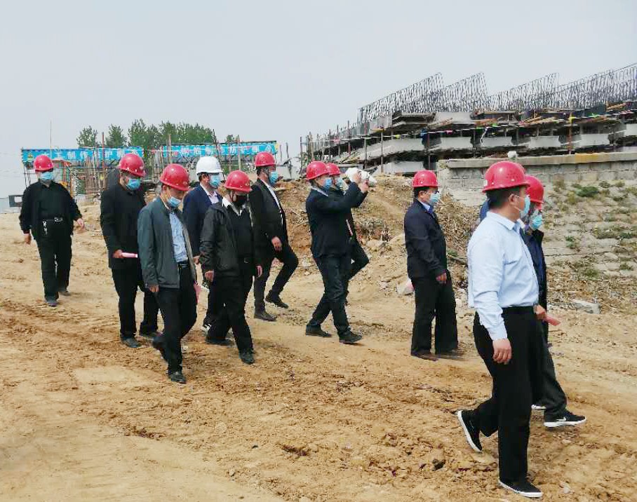 4月16日,山東省水利廳南水北調(diào)工程管理處副處長于鋒學,濟南市水文局研究員趙文聚,聊城市水文局工程師曹龍智一行,到我公司承建的嶧城區(qū)陰平鎮(zhèn)前張村閘工程現(xiàn)場視察指導工作。棗莊市城鄉(xiāng)水務局黨組成員、副調(diào)研員劉紹峰,嶧城區(qū)城鄉(xiāng)水務局局長李玉偉、副局長劉明,山東國金水利發(fā)展集團有限公司副總經(jīng)理宋慶國,棗莊市水利開發(fā)有限公司總經(jīng)理岳磊陪同。