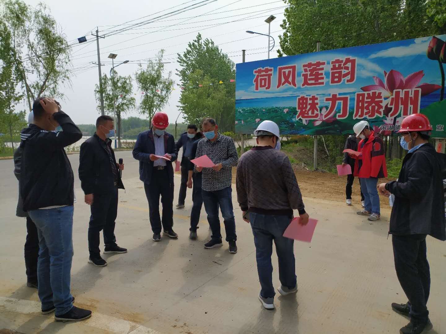 近日,山東省水利工程建設(shè)質(zhì)量與安全中心主任王玉偉、棗莊市重點(diǎn)水利建設(shè)工程管理處主任陳敏強(qiáng)、滕州市水利建設(shè)管理處副局長呂巖一行,到我公司承建的山東省湖東滯洪區(qū)(棗莊-滕州)建設(shè)工程現(xiàn)場進(jìn)行質(zhì)量與安全調(diào)研。棗莊市水利開發(fā)有限公司副總經(jīng)理鄭濟(jì)營陪同。